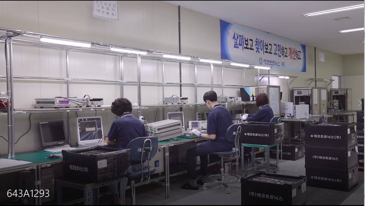 에코트로닉스의 EMS 공정은 RFID 등을 통한 실시간 이력 추적 시스템을 통해 End-to-End Traceability 시스템 구축으로 제조 품질 향상을 추구하고 있으며, 각 부문별 실시간 공정 관리 시스템 구축을 통해 Smart Factory 를 구현하여 효율적인 대응 체제로 운영되고 있습니다.